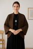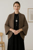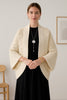 Tu enfiles la veste-châle Kajo™ sur tes épaules et ressens immédiatement la chaleur douce et le style élégant qui complète ta tenue.